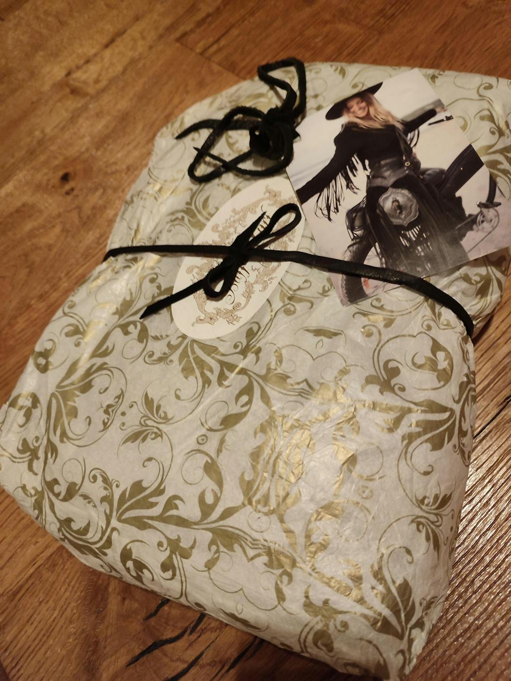 I got an absolutely beautiful package in the mail with my belt and rings, and Terry even took the time to customise my belt slightly at my request ,then added an extra ring as an apology for the delay because it took her longer than she would have liked it to. I now have a matching cuff,belt,and three rings to finish the look and love every one of them. My husband was very impressed he saw it comes out of the wrapper too. Love buffalo girls stuff so much.